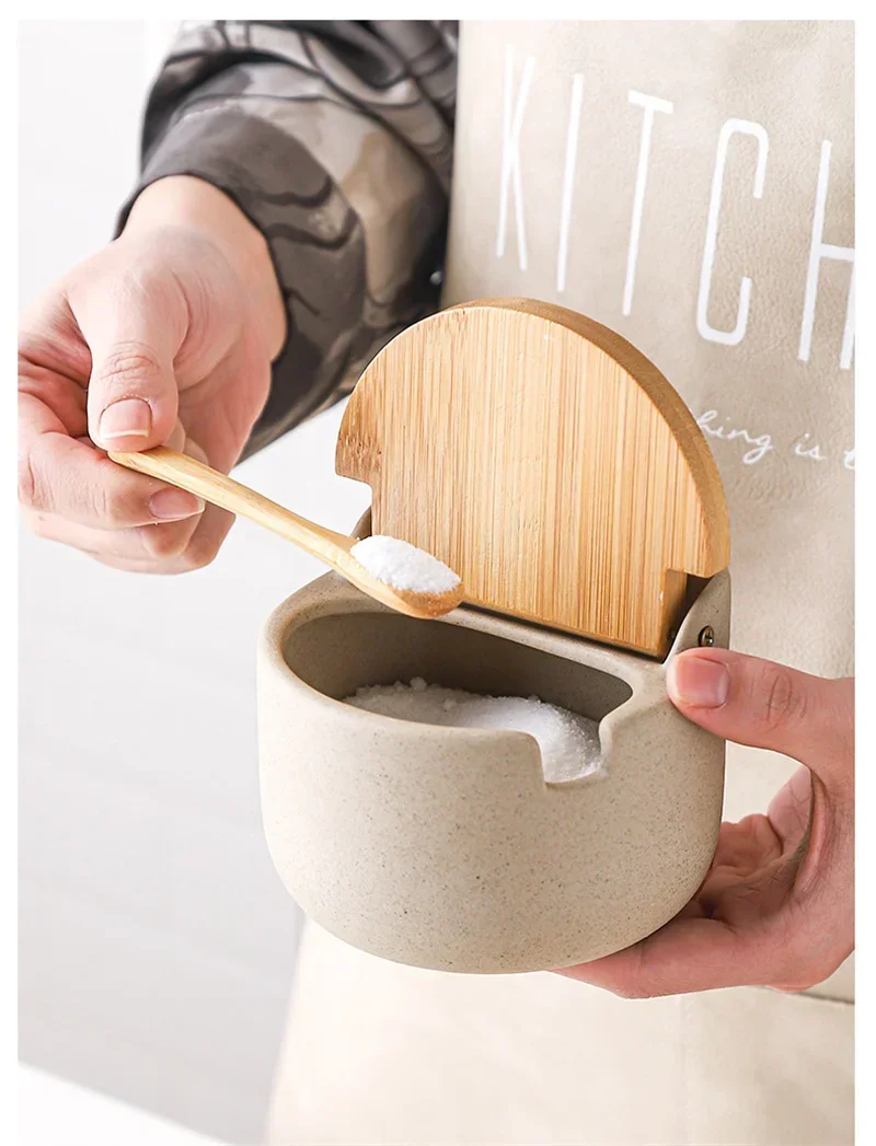 1.Premium Quality: Our Ceramic Bamboo And Wood Lid Seasoning Pot is made with high-quality materials, ensuring durability and long-lasting use in your kitchen.